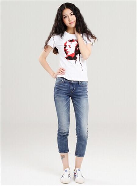 运动T恤+牛仔裤:动感十足的搭配让人一眼就能感受到阳光活力,宽松的运动T恤可以给皮肤最舒适的触感,不失为在炎炎夏日里的绝佳搭配。