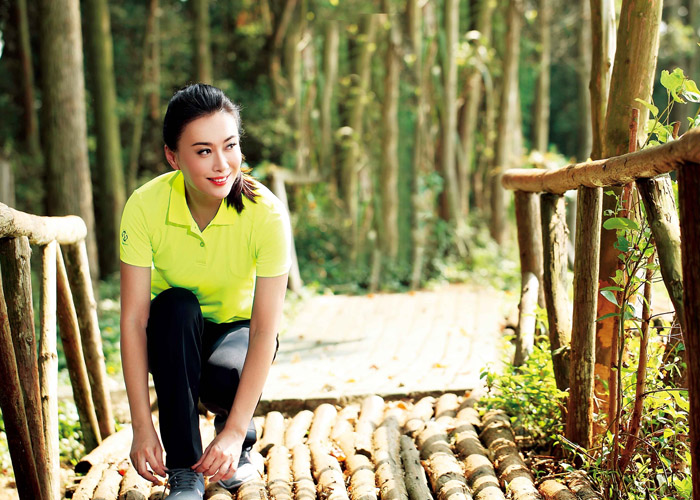 设计师在这款T恤胸前采用拼接设计,主要是为了更好的体现女性的身材,并且使其更具时尚运动感;后背则采用了特殊的透气处理,在运动的过程中可以有效的散发热量保持体温,中间的反光条用作后背点缀,整体不显单调,在夜跑的过程中还可以起到很好的保护作用。